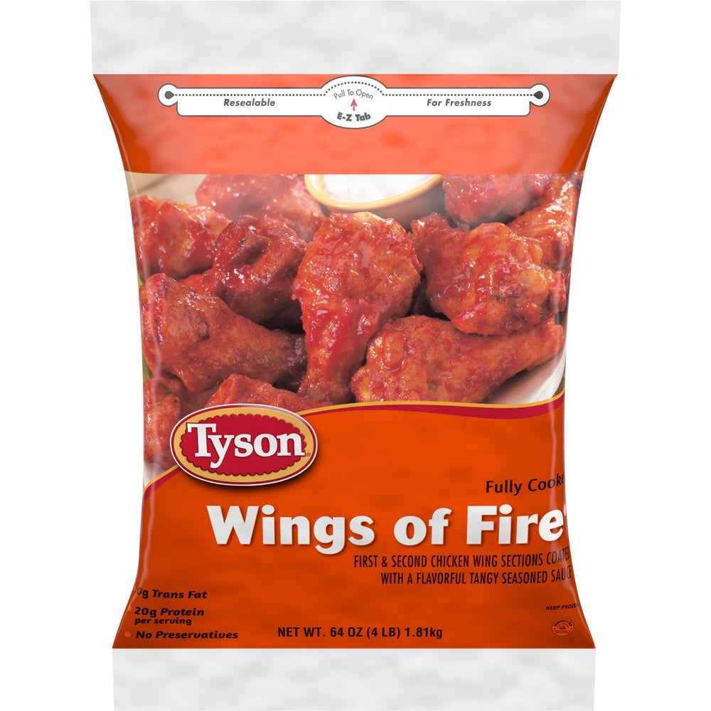 Tyson Preferred Partner Fire Glazed Bone-In Chicken Wings, Split, 12-14 Count per Pound, Cooked, Individually Frozen, 4 Lb Bag, 6/Case