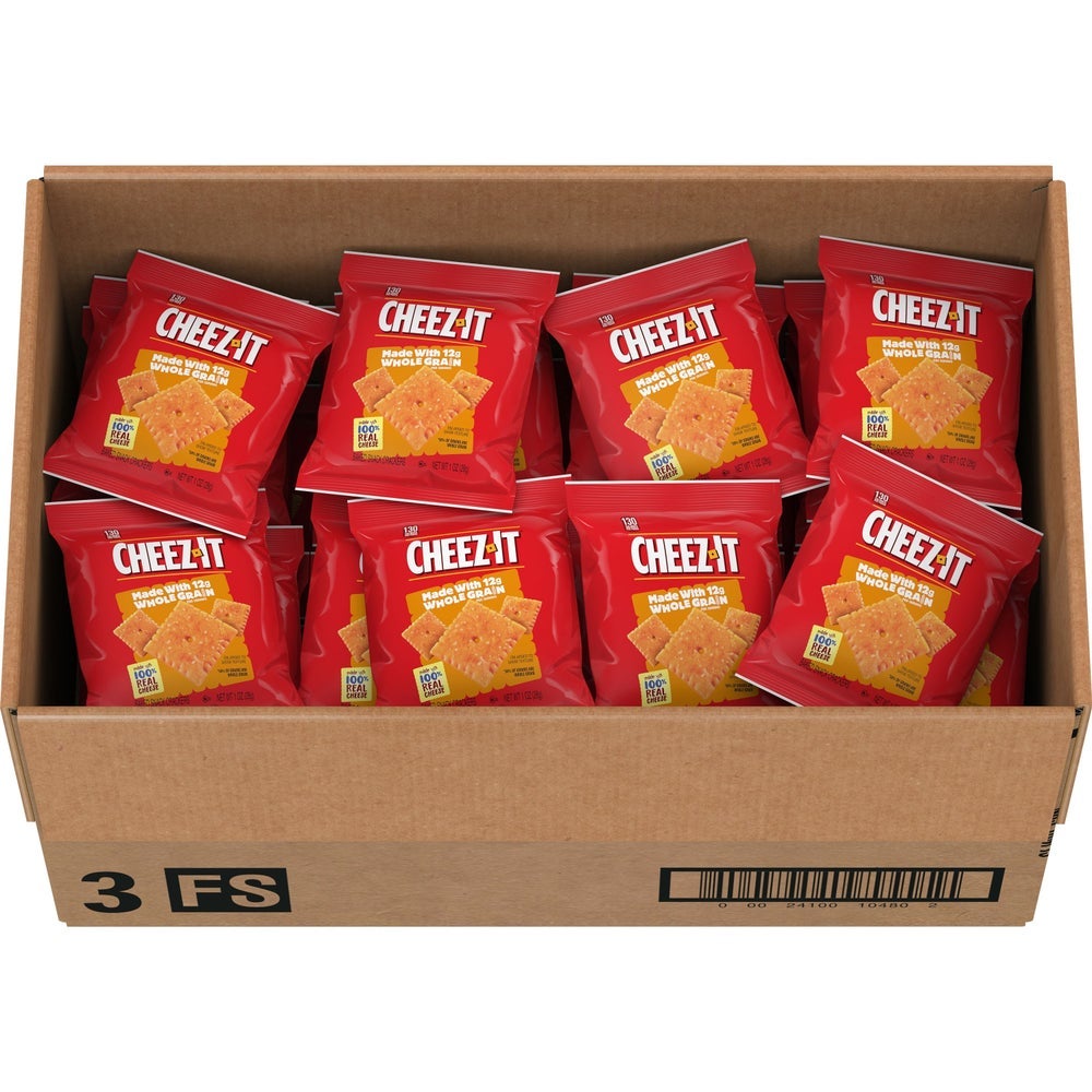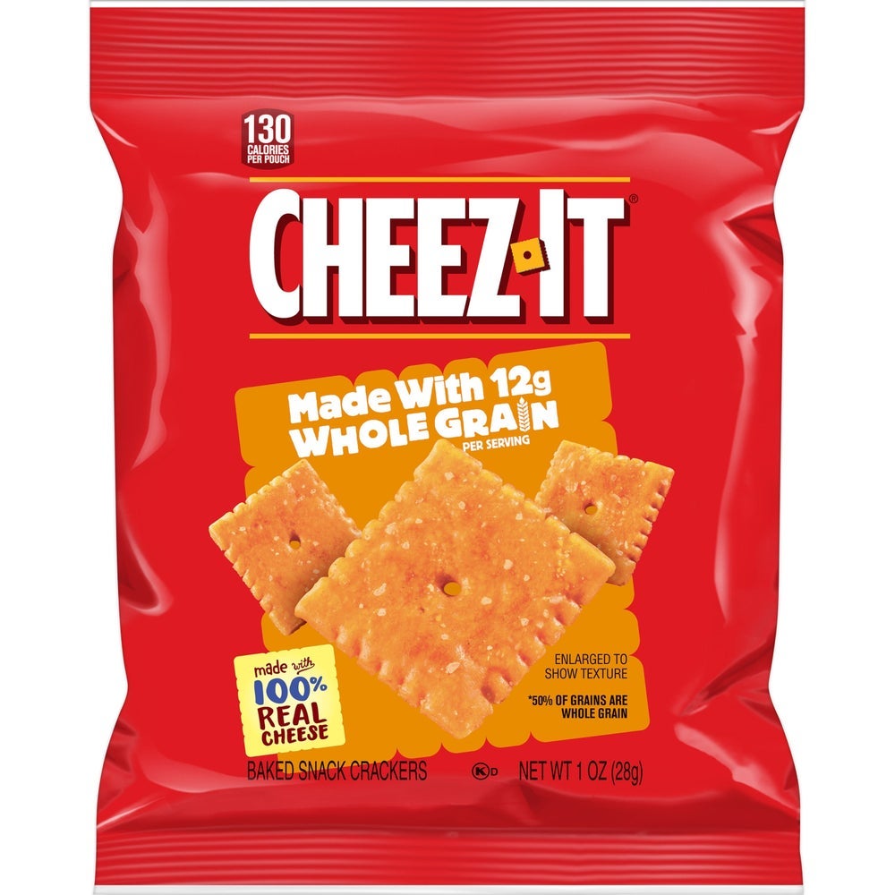 Satisfy students with Cheez It Made with Whole Grain Baked Snack Crackers, Bite size cheese crackers baked to crispy perfection. These crackers are the real deal, made with 100% real cheese for an irresistible taste.
