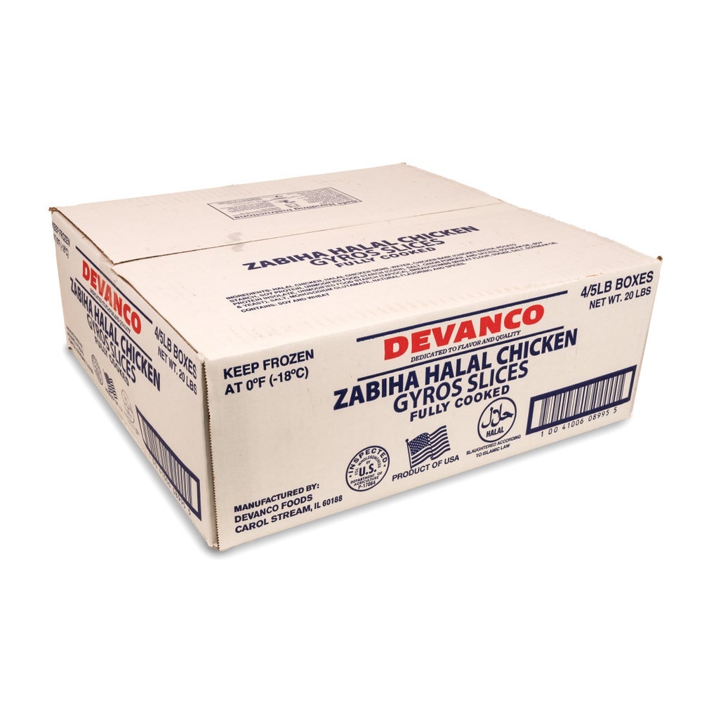• Devanco Halal Chicken Gyro Slices 5lb | Corrugated Box