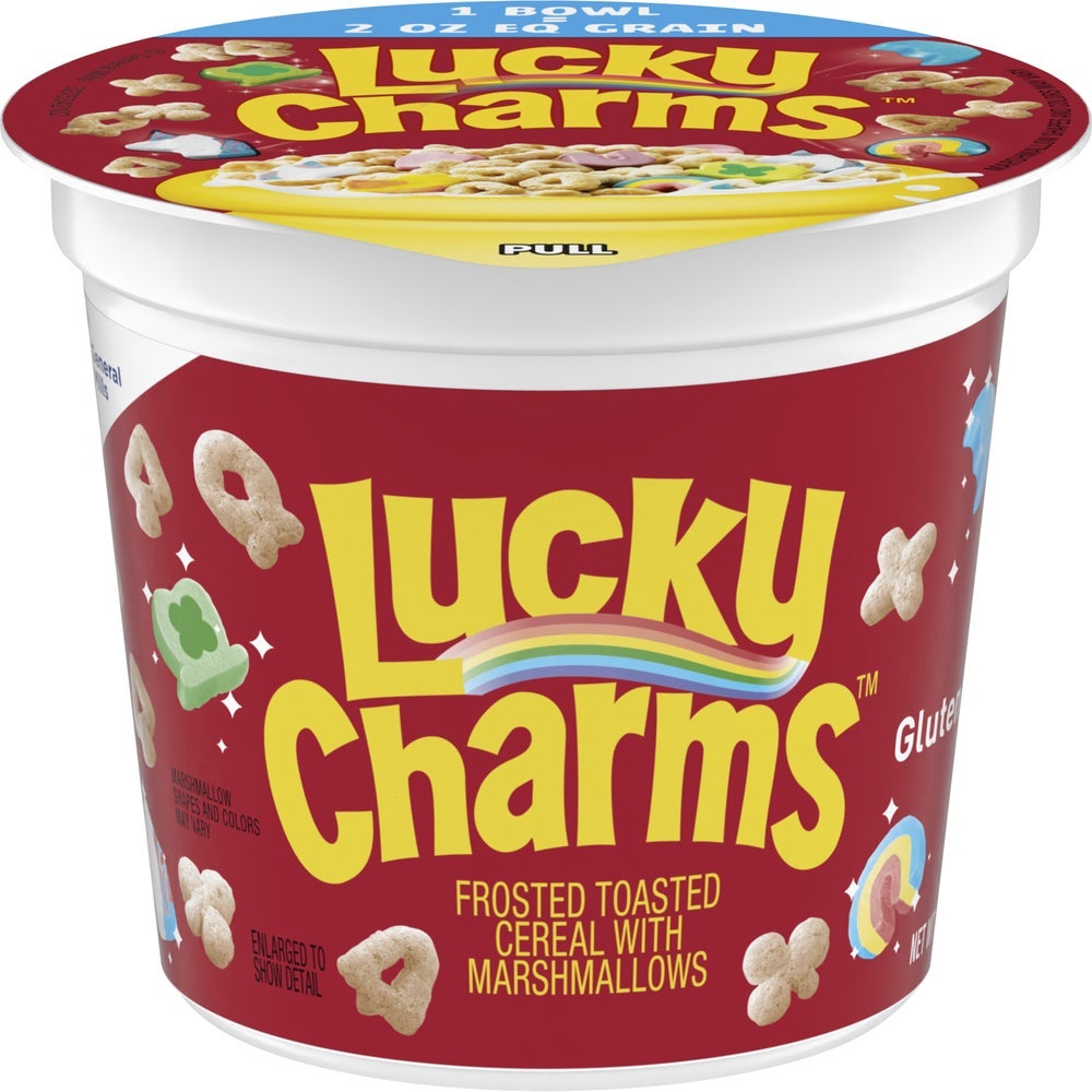 Lucky Charms Frosted Toasted Oat Cereal, with Marshmallows, Cup, 1.7 Ounce, 6 Ct Tray, 10/Case