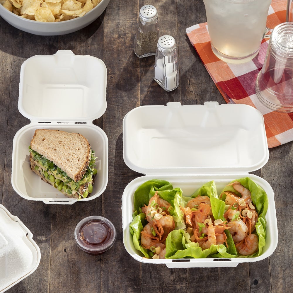 Earth Choice 9 x 6 x 3 Inch Molded Fiber Food Containers, White, Hinged, 2/Case