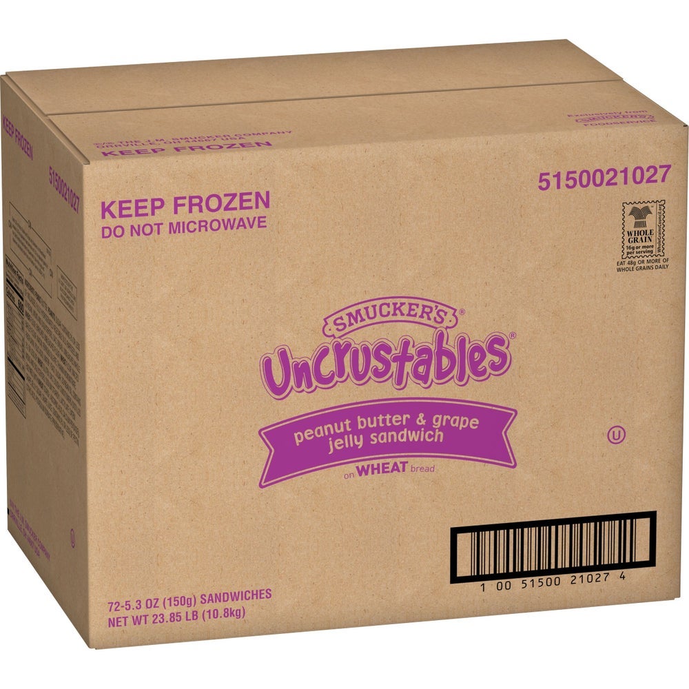 Smucker's Whole Grain Peanut Butter & Grape Jelly Uncrustable Sandwiches, Frozen, 5.3 Ounce, 1 Ct Package, 72/Case