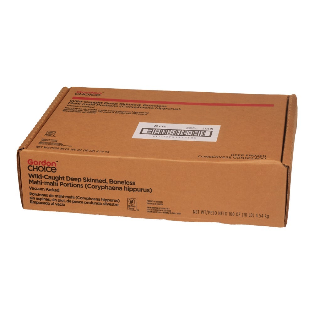 Gordon Choice Mahi-Mahi Portions, Wild-Caught, Boneless Skinless, Bloodline Out, 8 Ounce, Raw, Once-Frozen, IQF Individually Vacuum-Packed, 10 Lb Package, 1/Case