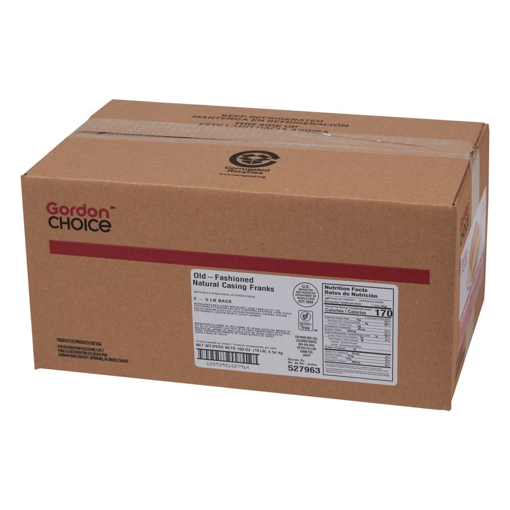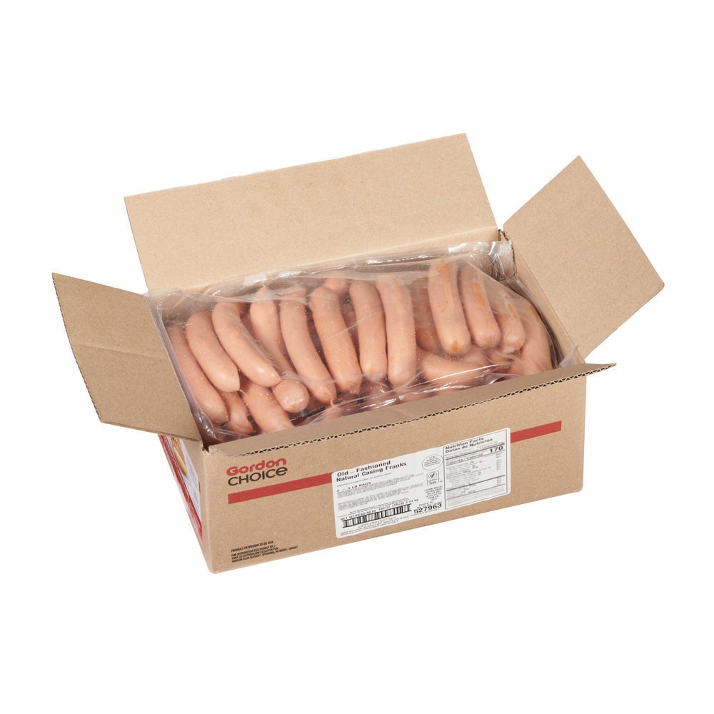 Gordon Choice Beef & Pork Franks, 6 Inch, Natural Casing, 8 Count per Pound, Fresh, 5 Lb Bag, 2/Case