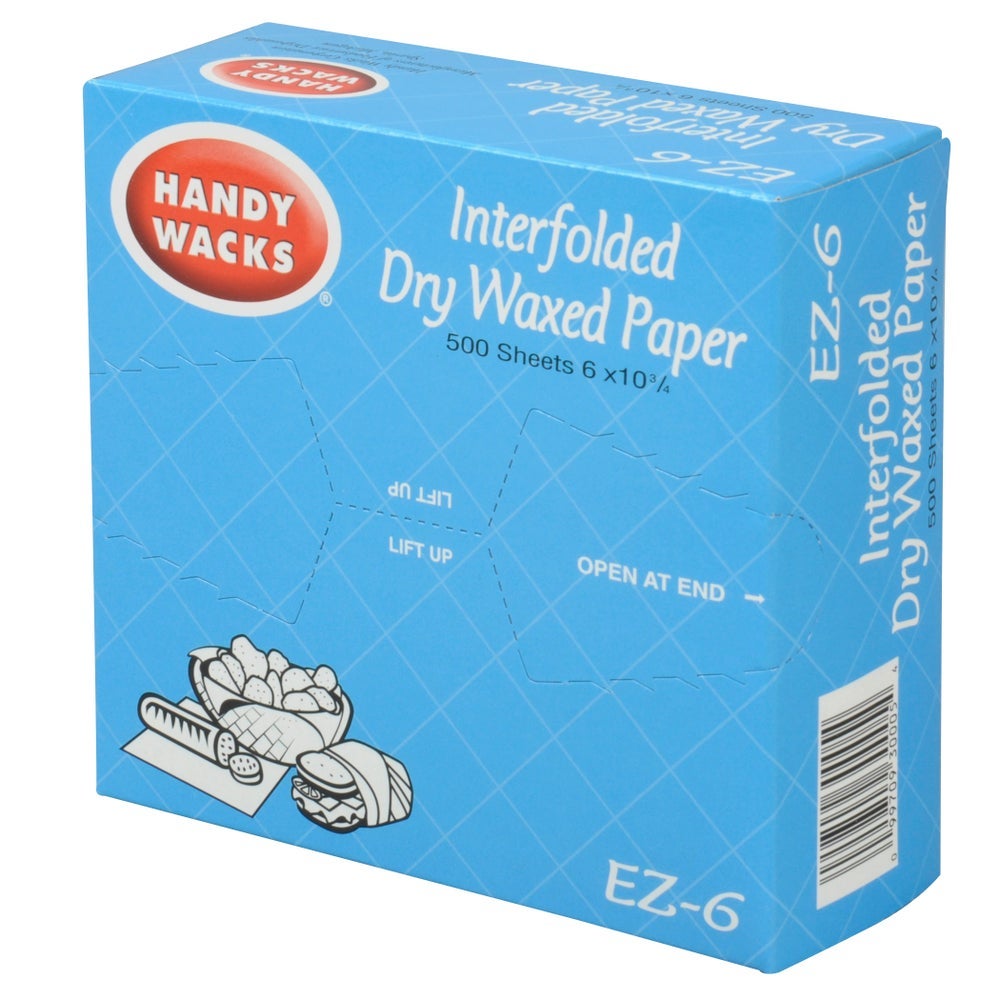 Handy Wacks 6 x 10.75 Inch Dry-Waxed Paper Deli Wraps, White, Light-Grade, Interfolded, 500 Ct Package, 12/Case