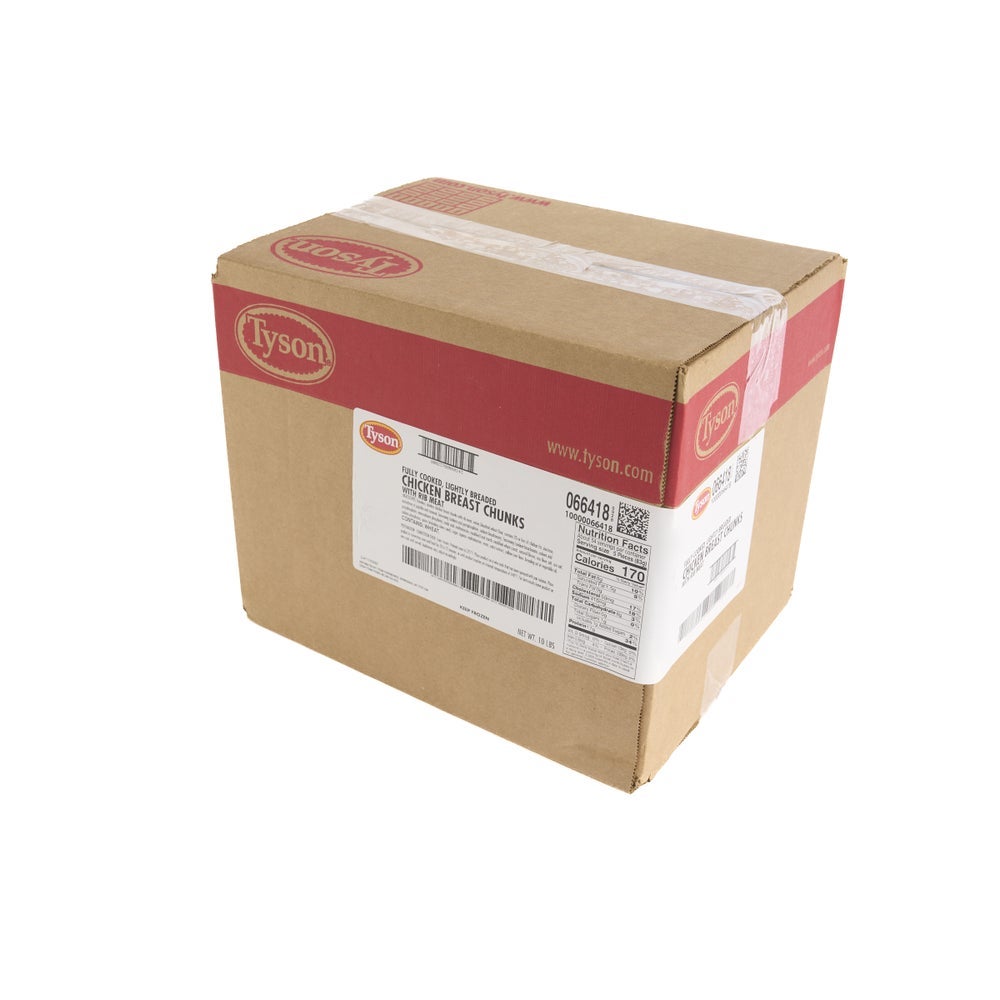 Tyson Lightly Breaded Chicken Breast Chunks, Cooked, Frozen, 5 Lb Bag, 2/Case