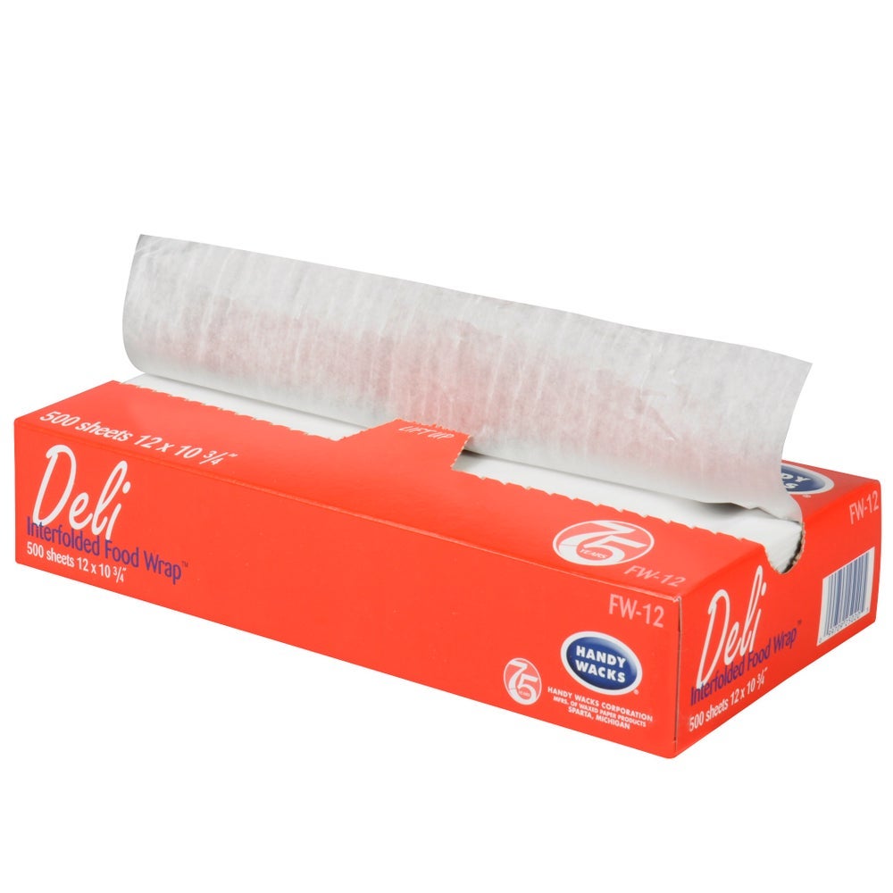 Handy Wacks 12 x 10.75 Inch Dry-Waxed Paper Deli Wraps, White, Medium-Grade, Interfolded, 500 Ct Package, 12/Case