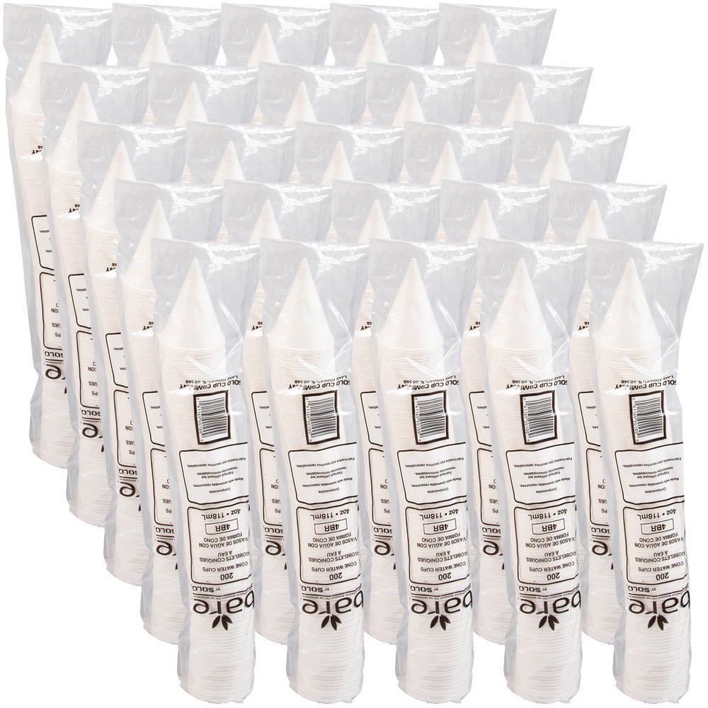 Solo 4 Ounce Paper Water Cone Cups, White, Wax Coated, 200 Ct Package, 25/Case