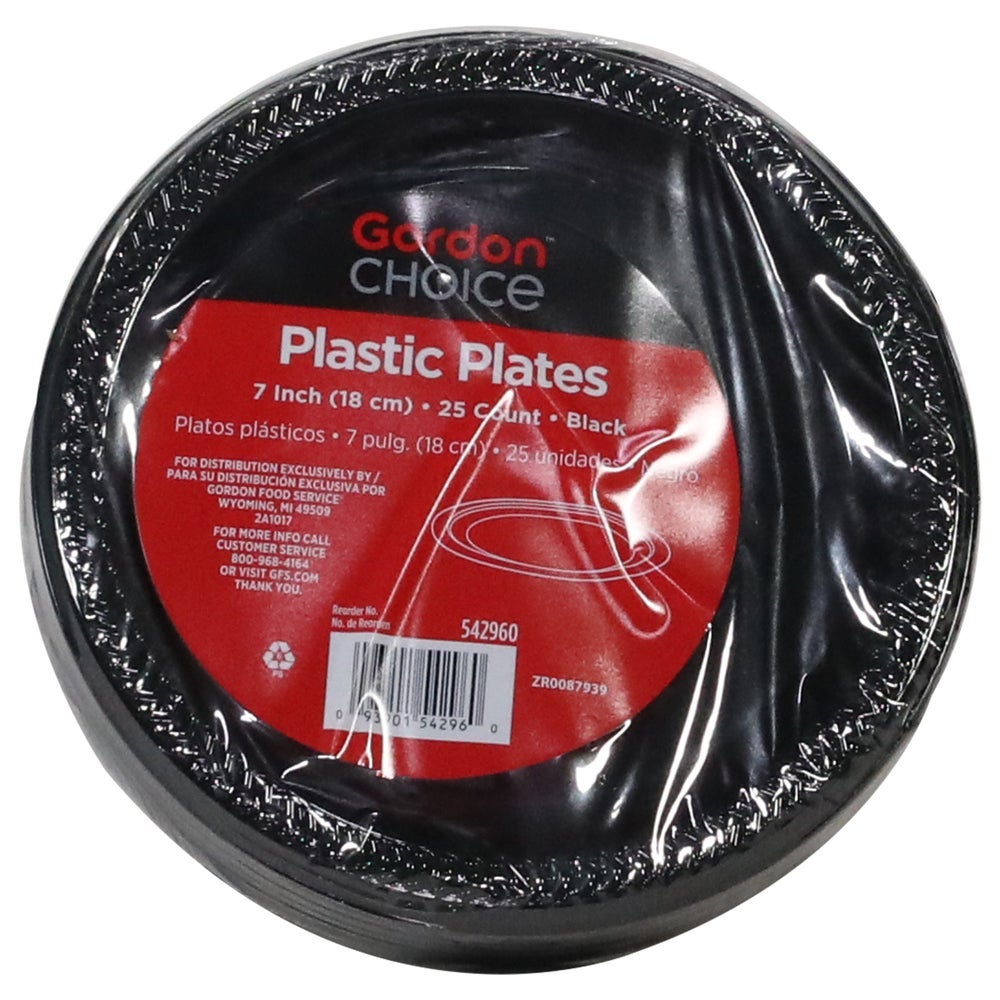 Gordon Choice 7 Inch Plastic Plates, Black, Polystyrene, 25 Ct Package, 10/Case