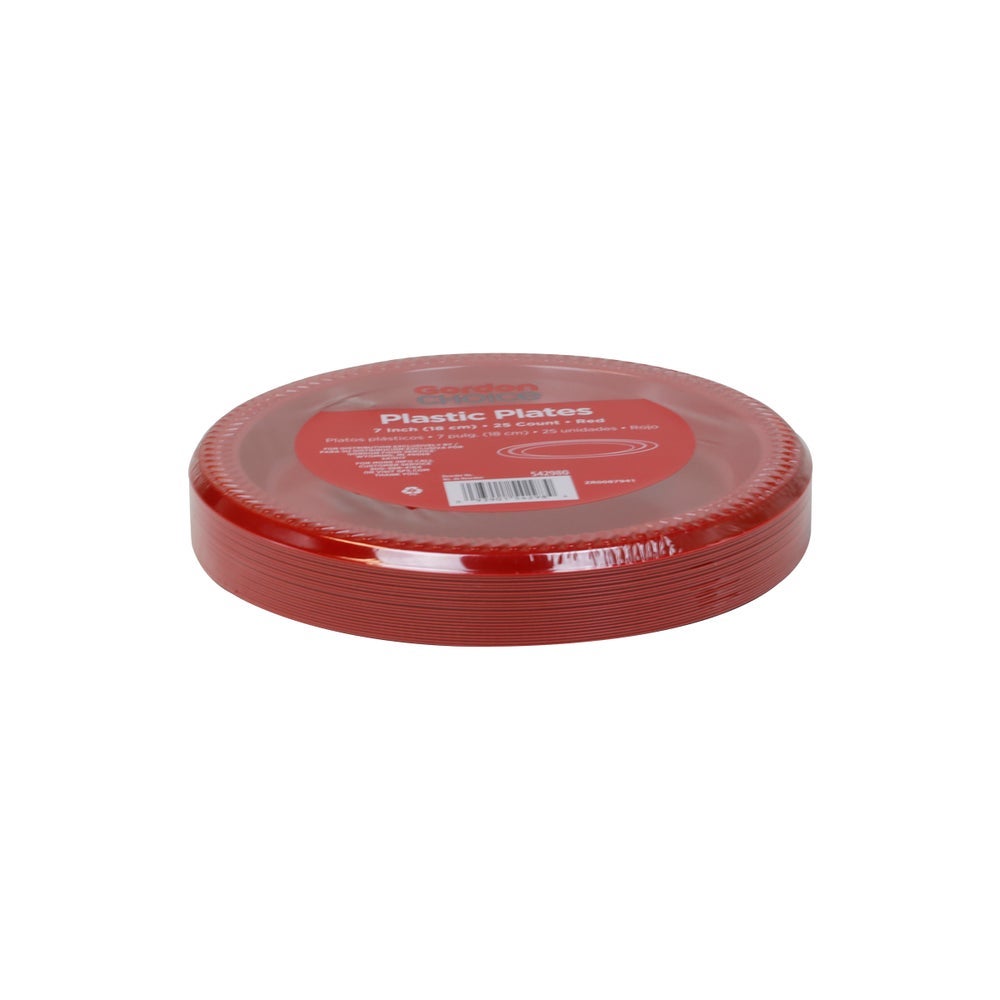 Gordon Choice 7 Inch Plastic Plates, Red, Polystyrene, 25 Ct Package, 10/Case
