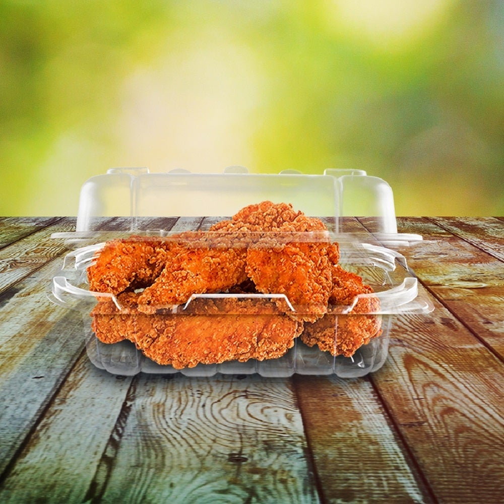 Crisp Food Technologies 7.5 x 4.5 Inch Plastic Containers, Clear, Hinged, Vented, 600/Case