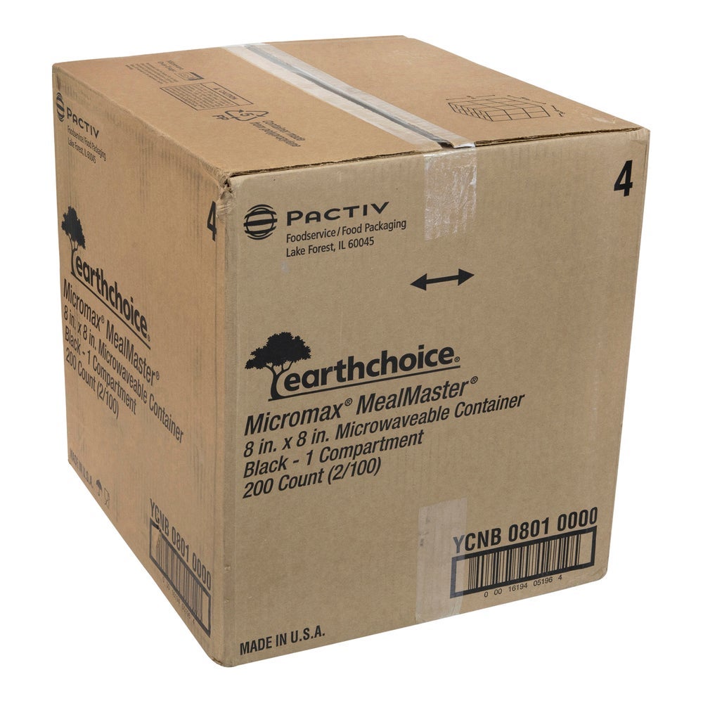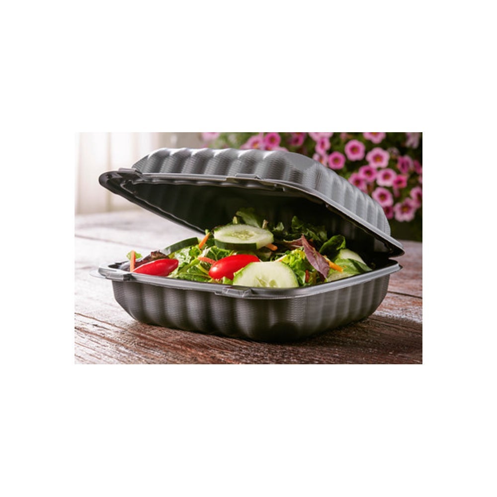 Earthchoice 8 x 8 Inch 1-Compartment Containers, Black, Hinged, Mineral Filled Polypropylene, 100 Ct Package, 2/Case