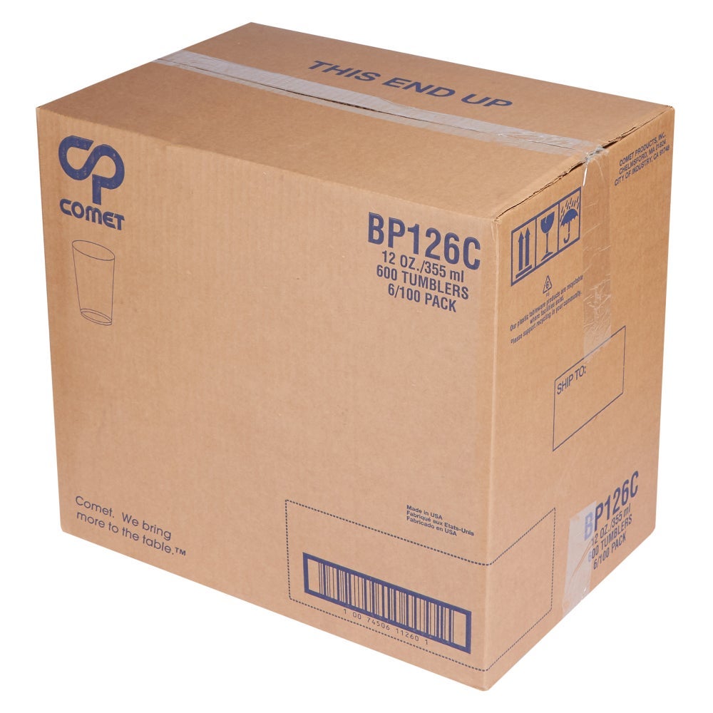 Comet 12 Ounce Plastic Cups, Clear, Polystyrene, 100 Ct Package, 6/Case