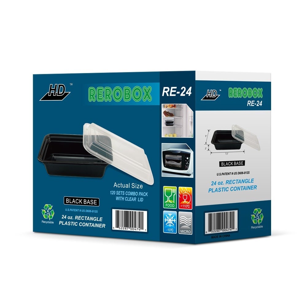 Rerobox 24 Ounce Plastic Food Containers, Rectangular, 120 Ct Package, 1/Case