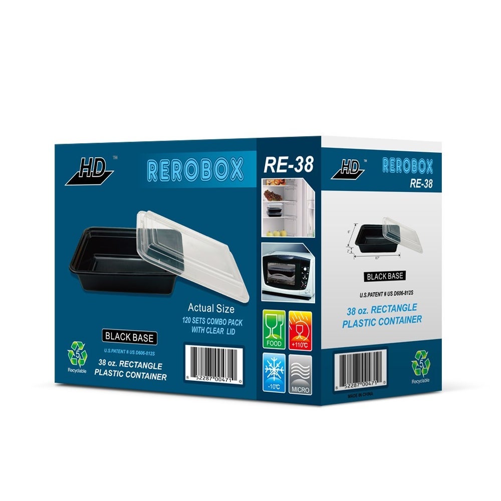 Rerobox 38 Ounce Plastic Food Containers, Rectangular, 120 Ct Package, 1/Case