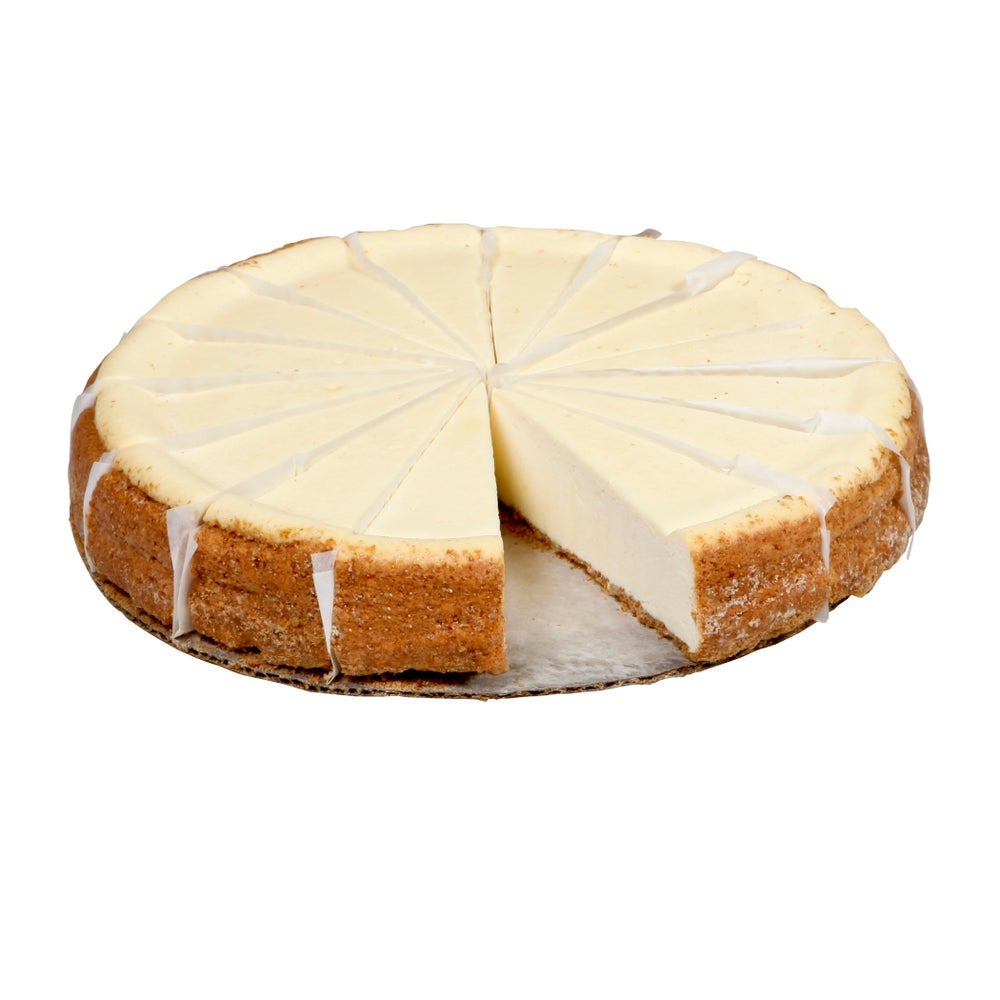These cheesecakes are made with 100 percent real cream cheese and pure Bourbon vanilla extract for decadently creamy taste despite having a no-sugar-added profile. This 1.5 inch tall dessert sits atop a graham cracker crust. Each cheesecake contains 16 precut slices.