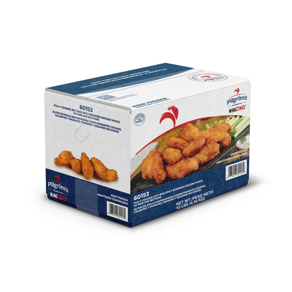 Pilgrim's Pride Spicy Breaded Chicken Wings, Cooked, Frozen, 5 Lb Bag, 2/Case