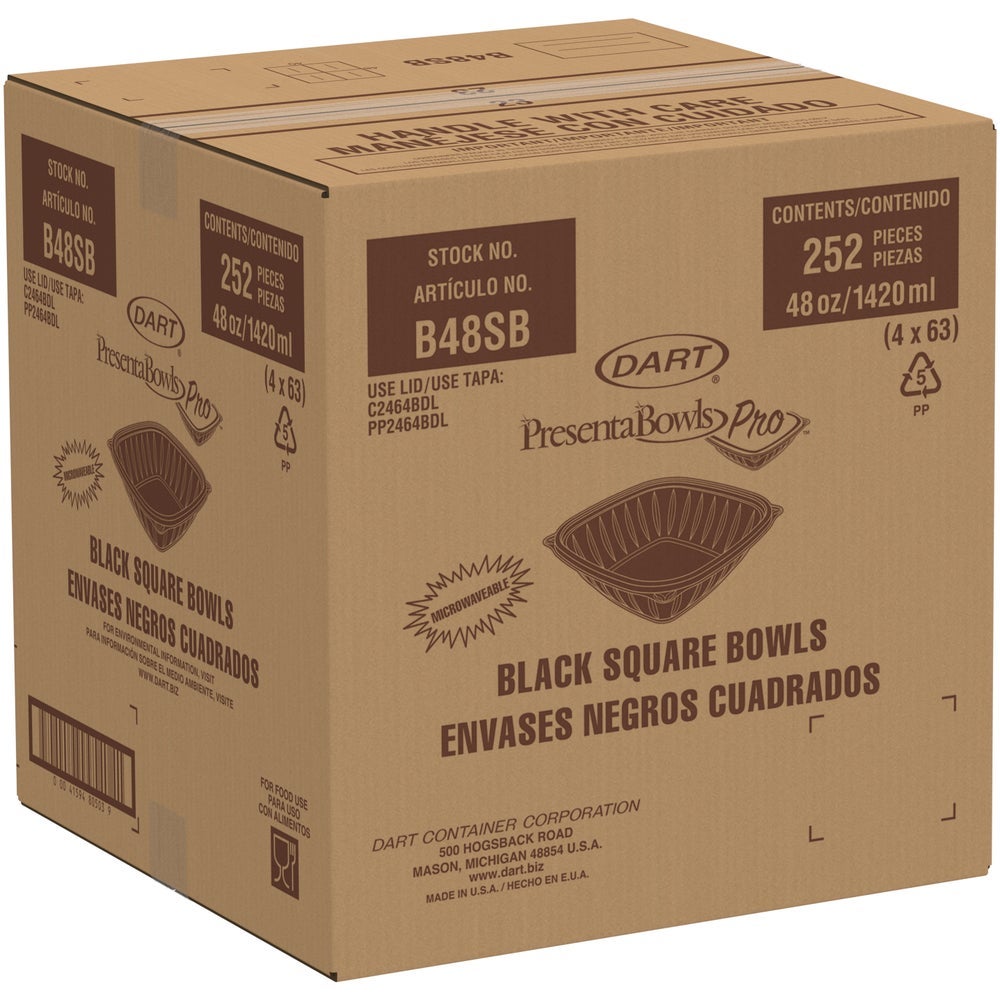 Dart 48 Ounce Plastic Bowls, Black, Square, 48 Ounce, 63 Ct Package, 4/Case