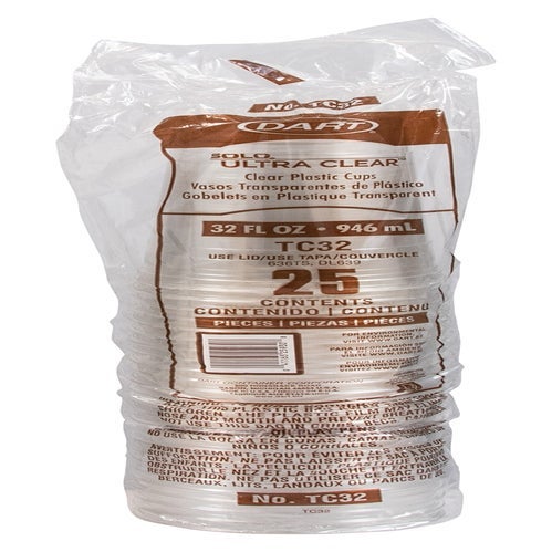 Dart 32 Ounce Plastic Cups, Clear, 32 Ounce, 25 Ct Package, 12/Case