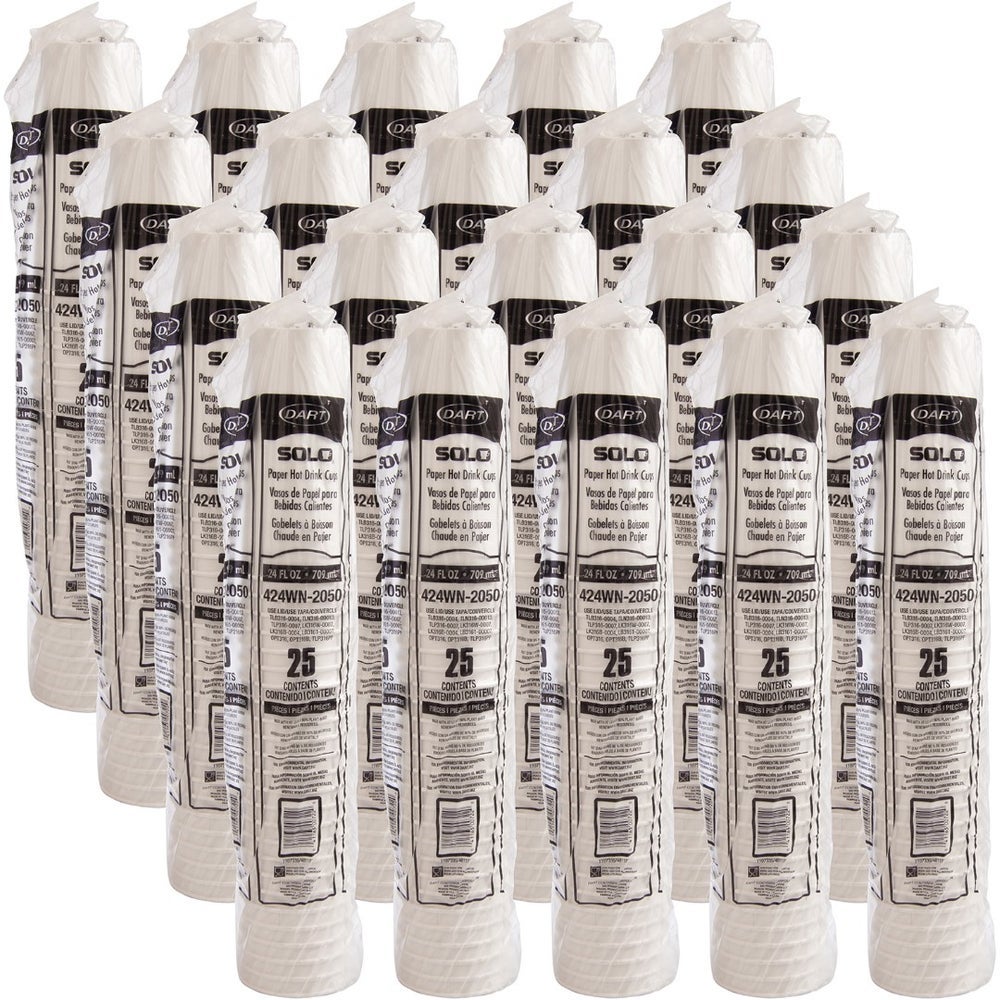 Dart 24 Ounce Paper Hot Cups, White, 24 Ounce, 25 Ct Package, 20/Case