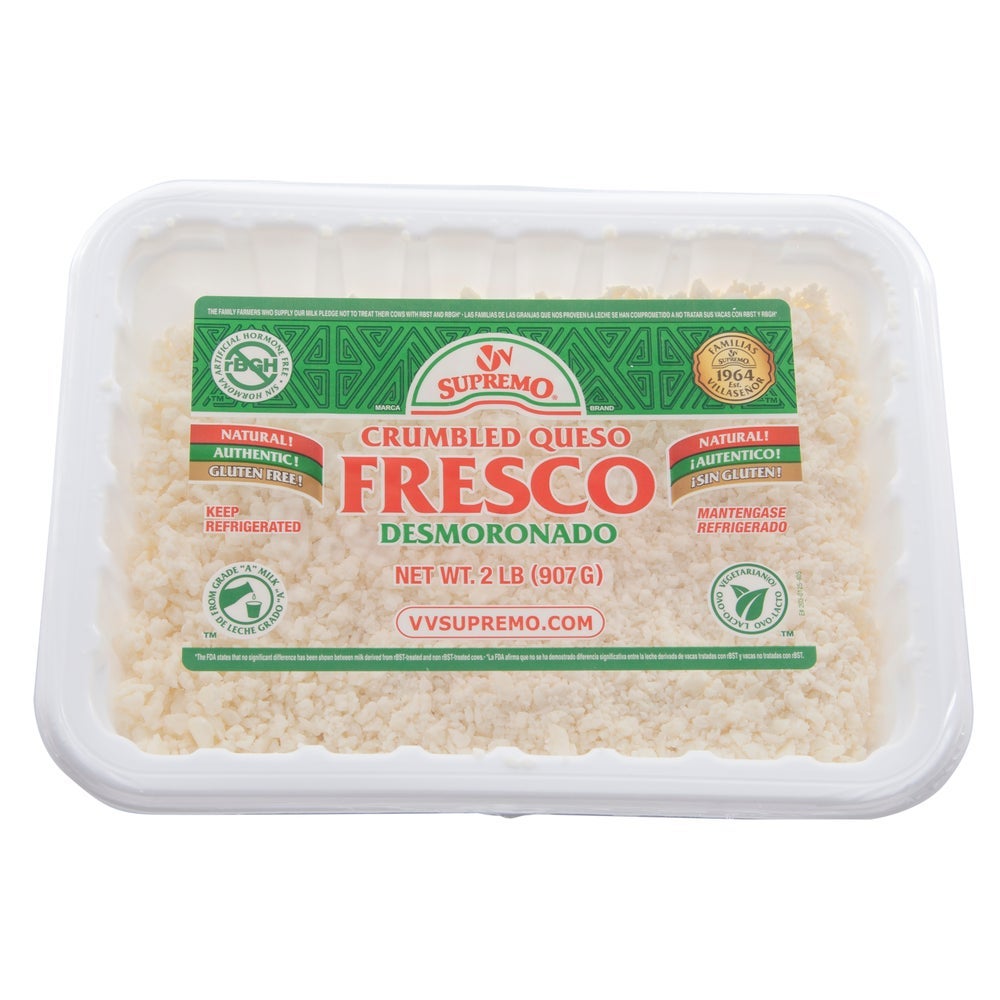 V&V Supremo Queso Fresco Cheese, Crumbles, 2 Lb Tray, 6/Case