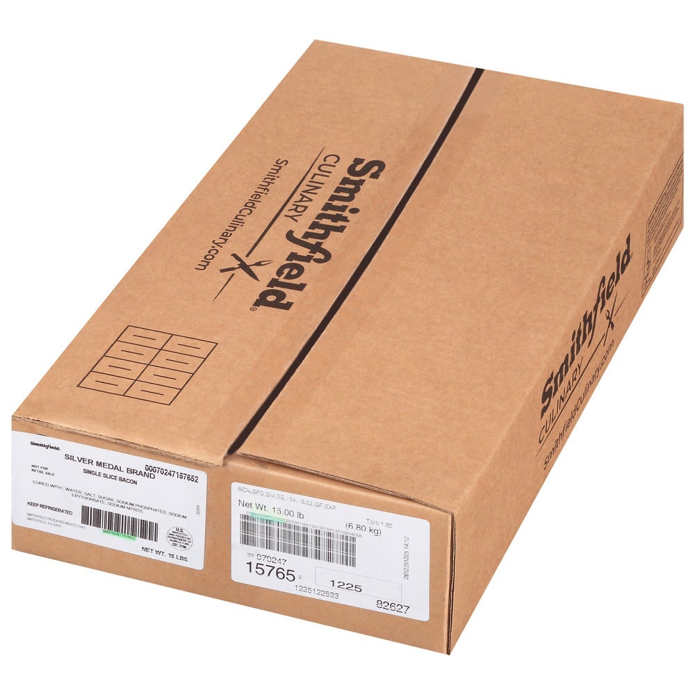Smithfield Laid-Out Bacon, 18-22 Slices per Pound, Fresh, 15 Lb Package, 1/Case