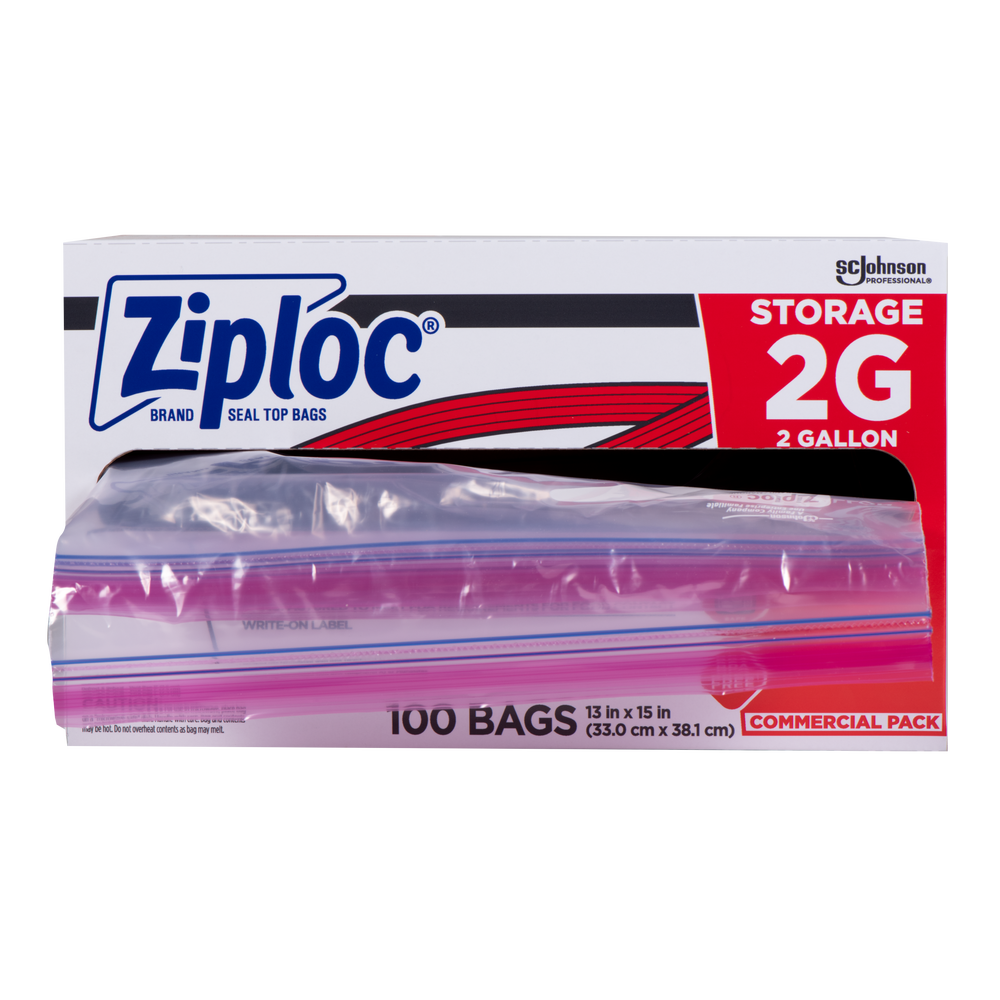 Ziploc 2 Gallon Plastic Reclosable Bags, 100/Case