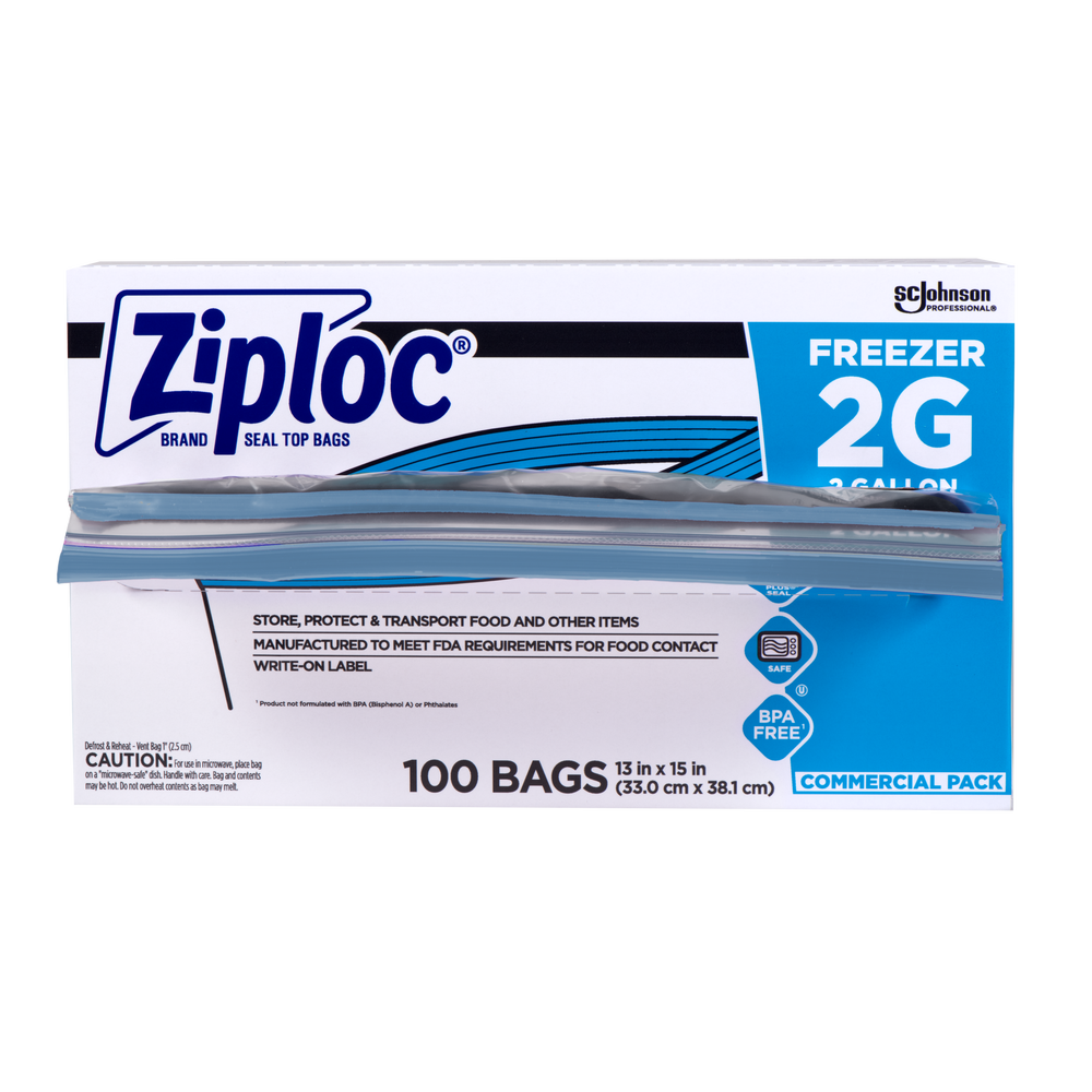 Ziploc 2 Gallon Plastic Reclosable Freezer Bags, 100/Case