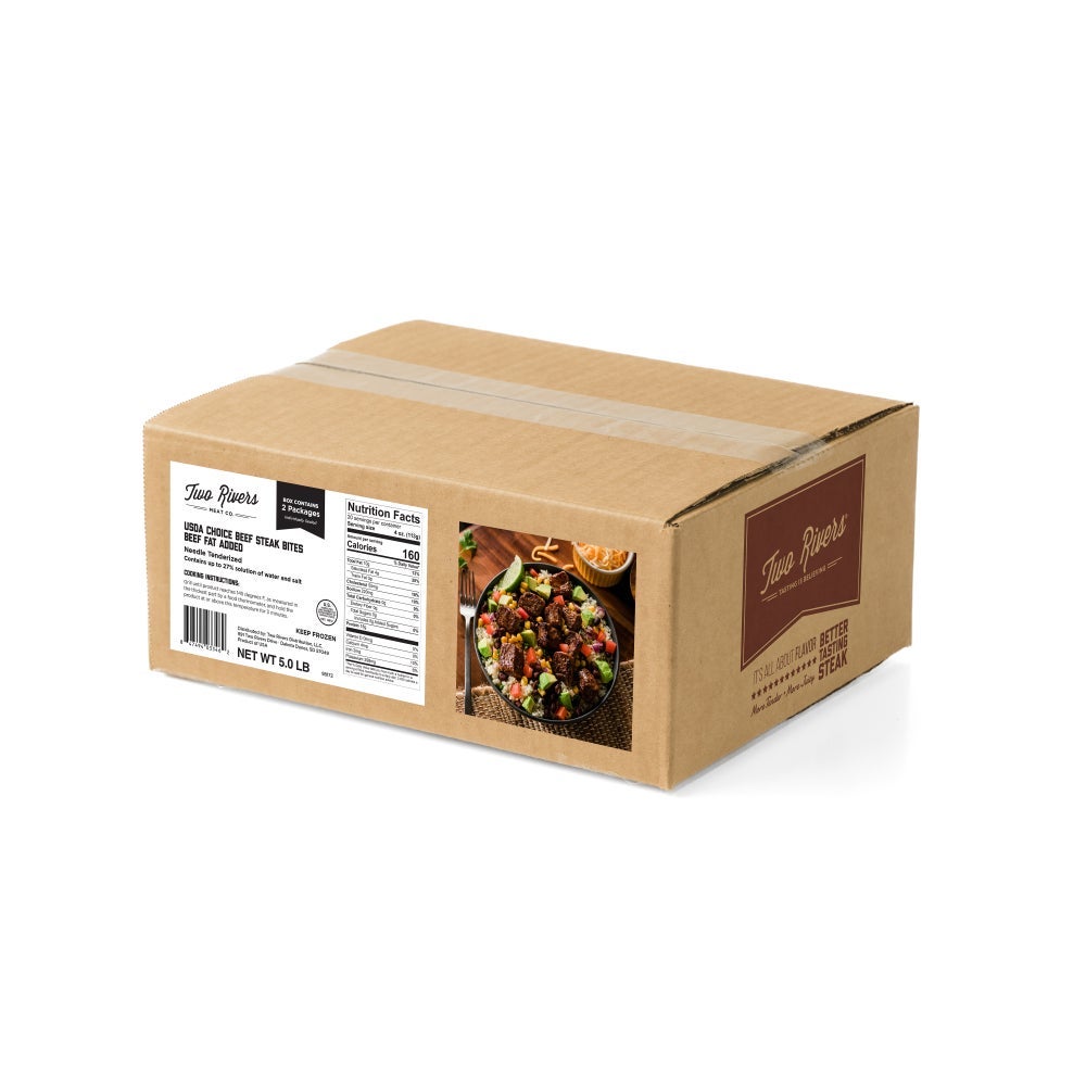 Two Rivers Beef Steak Bites, Frozen, 5 Lb Package, 4/Case