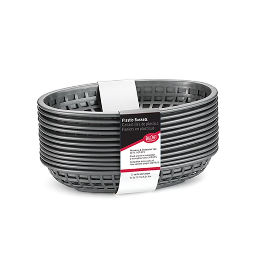 TableCraft Plastic Gunmetal Oval Baskets, 9.4 x 6 x 1.9 Inches, 12 Ct Package, 3/Case