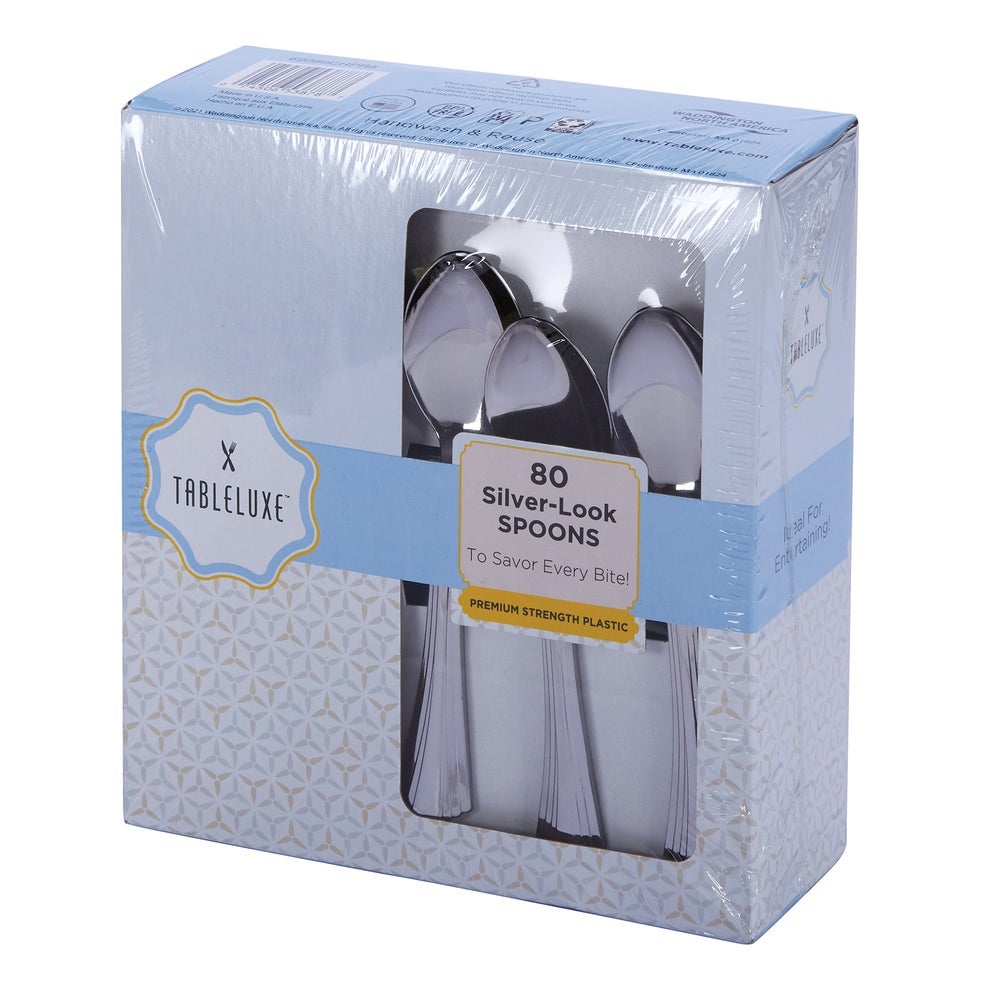 Reflections Heavyweight Plastic Spoons, Silver, with Full-Length Handles, Polystyrene, 80 Ct Box, 10/Case