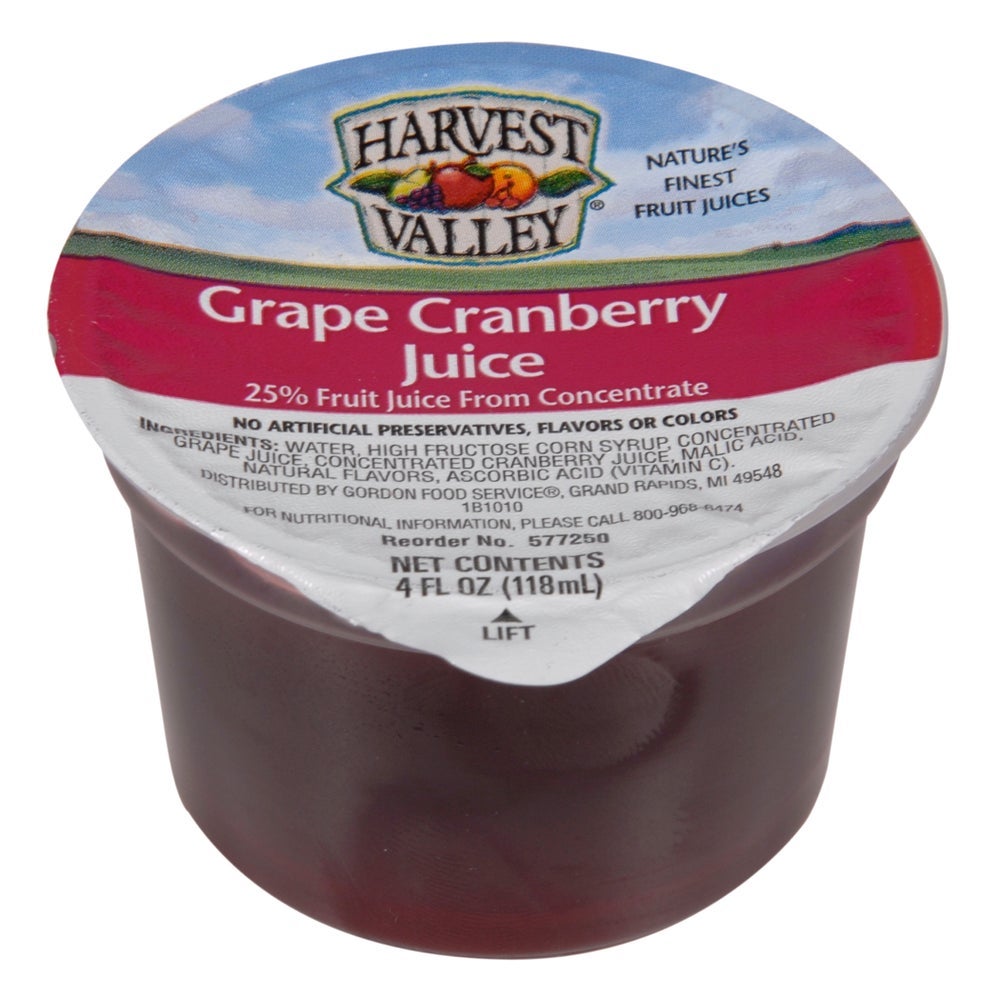 Harvest Valley 25% Grape Cranberry Juice Cup, Shelf-Stable, Single-Serve, 4 Fl Oz Each, 96/Case