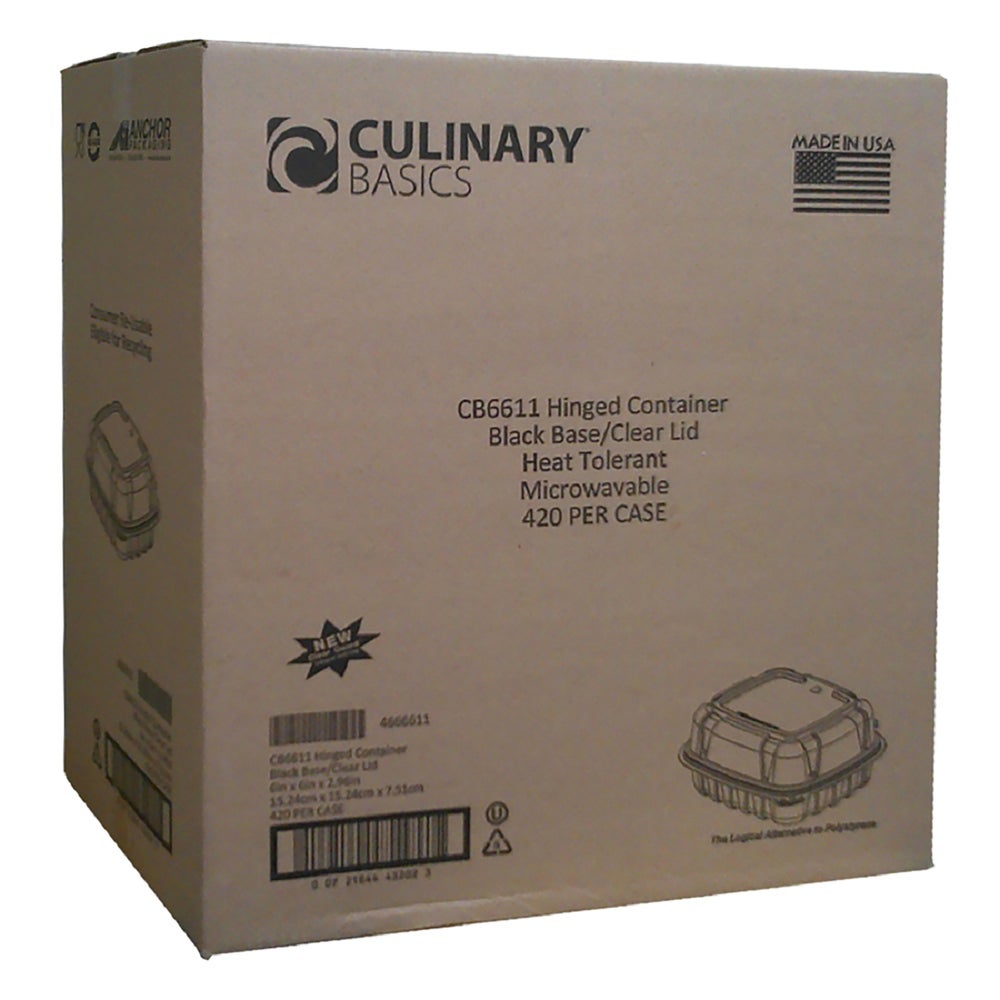 Anchor Packaging Culinary Basics 6 x 6 Inch Plastic 1 Compartment Containers, Black, Polypropylene, 420 Ct Package, 1/Case