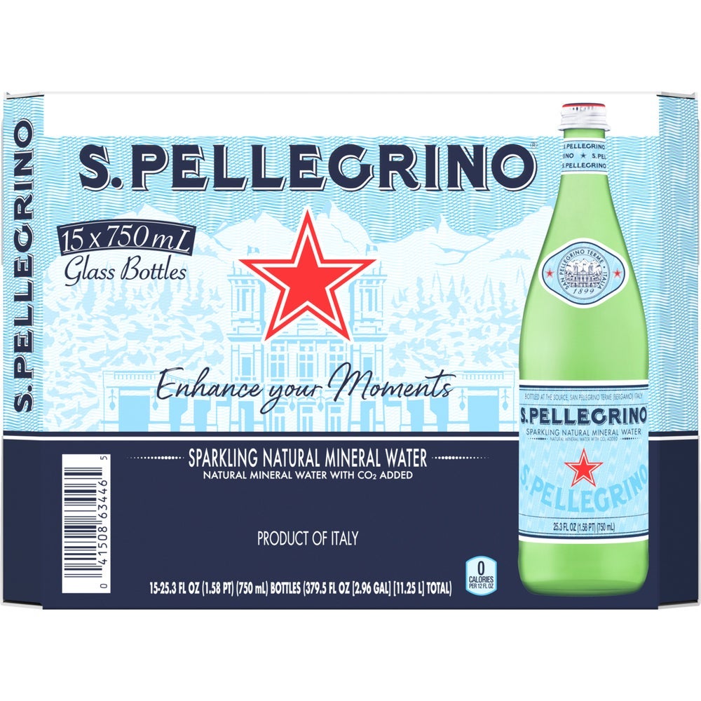 S.Pellegrino Natural Sparkling Mineral Water, Glass, 750 Ml, 15/Case