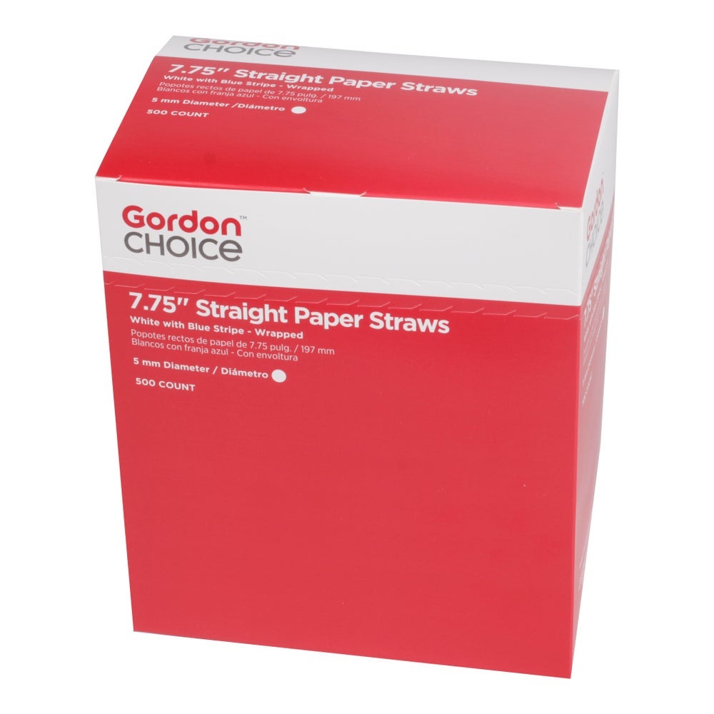 Gordon Choice 7.75 Inch Paper Jumbo Straws, White with Blue Stripe, Wrapped, 500 Ct Box, 12/Case