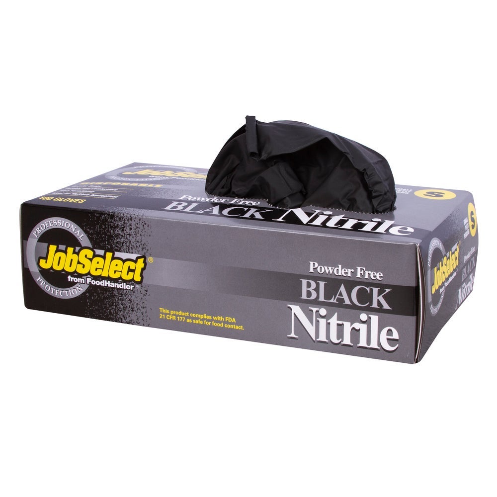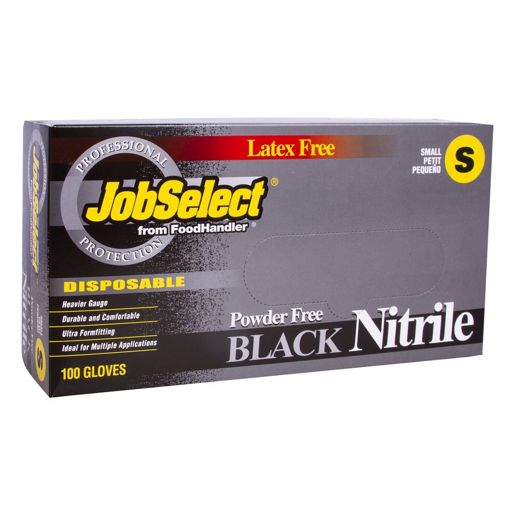 JobSelect Small Powder-Free Nitrile Gloves, Black, 100 Ct Box, 10/Case