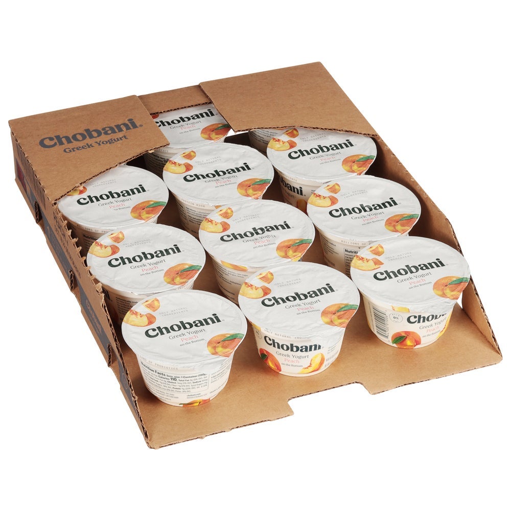 Chobani Nonfat Peach Greek Yogurt, Fruit on the Bottom, 5.3 Oz Each, 12/Case