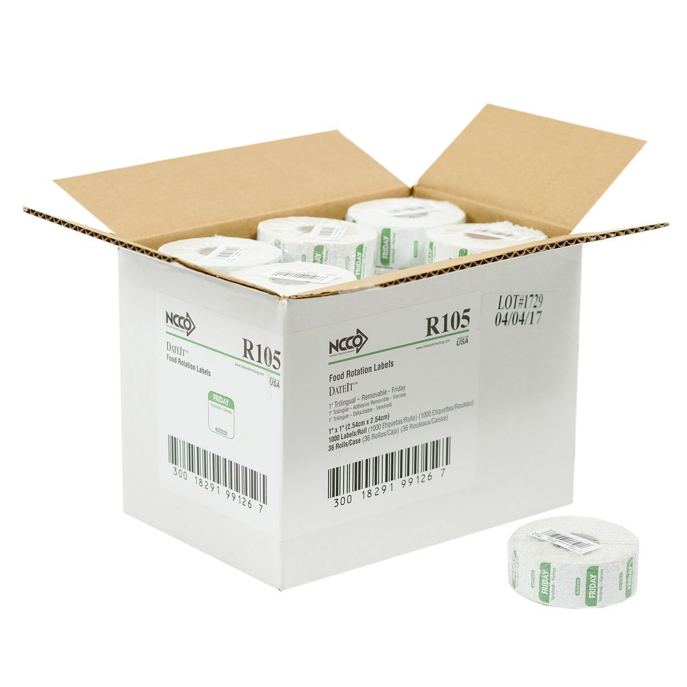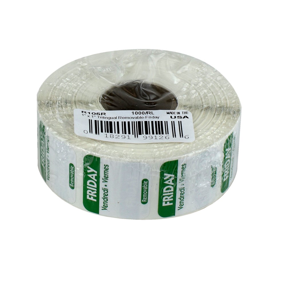 National Checking Company 1 x 1 Inch Removable Friday Labels, Green, 1000 Ct Roll, 3/Case
