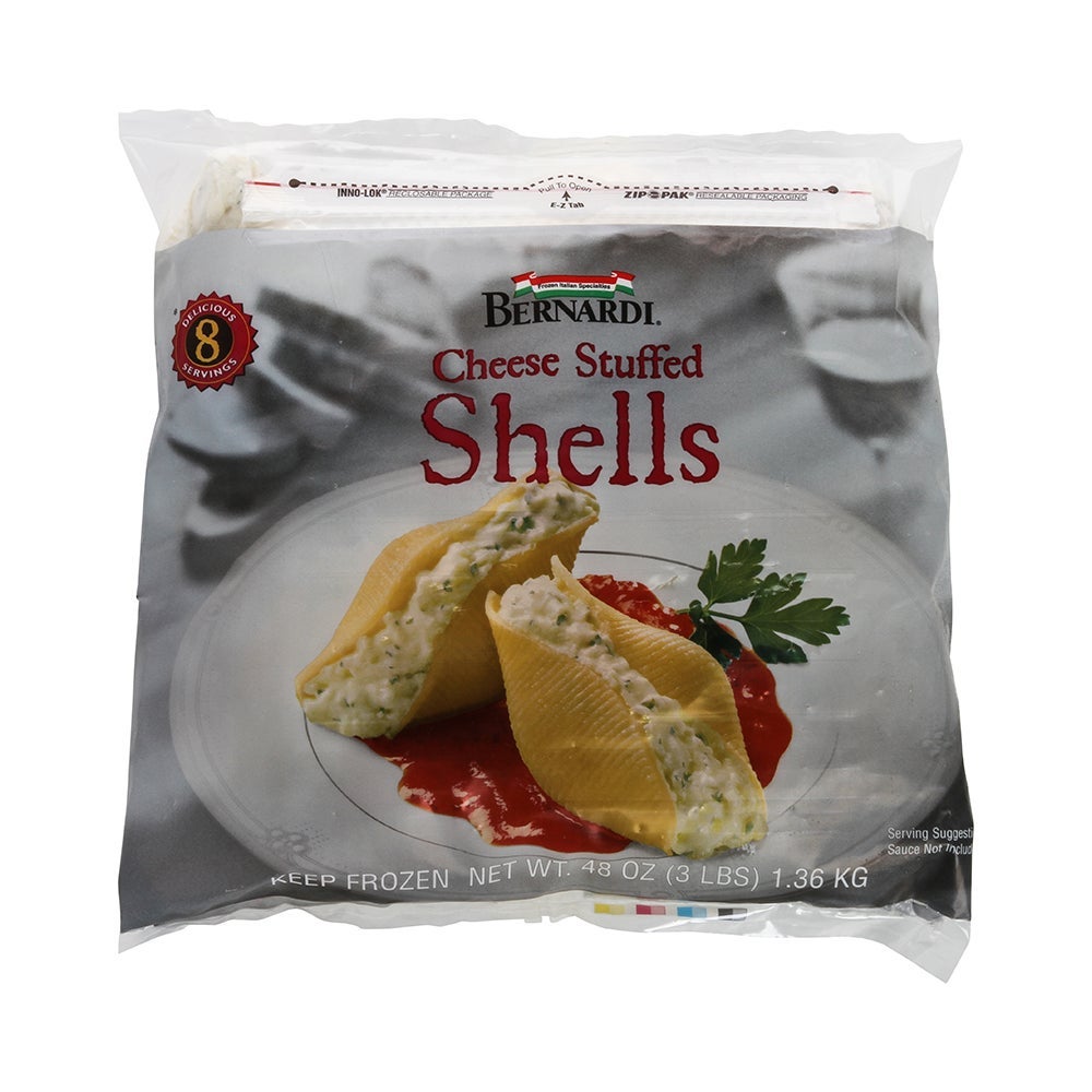 Bernardi Jumbo Cheese-Stuffed Shell Pasta, Cooked, Frozen, 3 Ounce, 3 Lb Bag, 4/Case