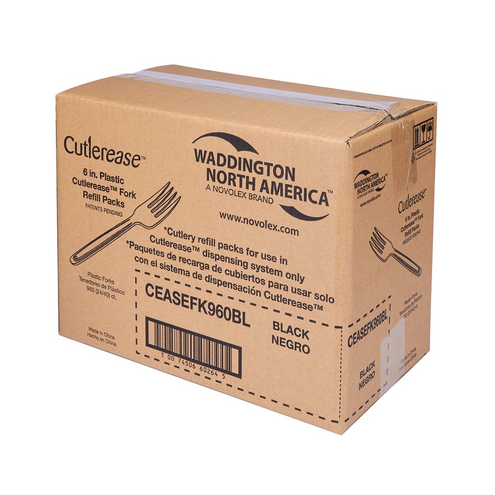 Cutlerease Medium-Weight Plastic Forks, Black, with Full-Length Handles, Polystyrene, 40 Ct Package, 24/Case