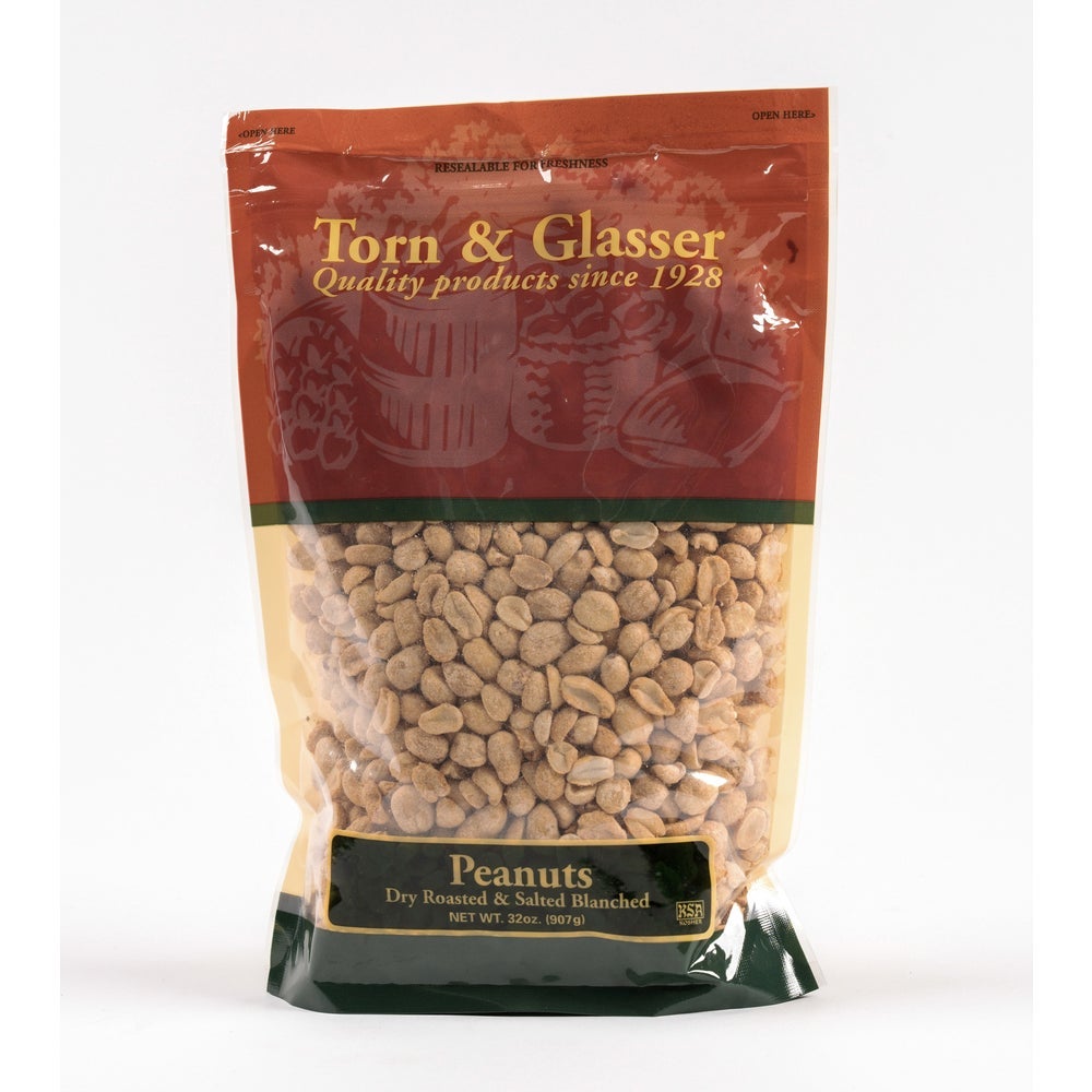 Torn & Glasser Dry Roasted Salted Blanched Peanuts, 2 Lb Bag, 6/Case