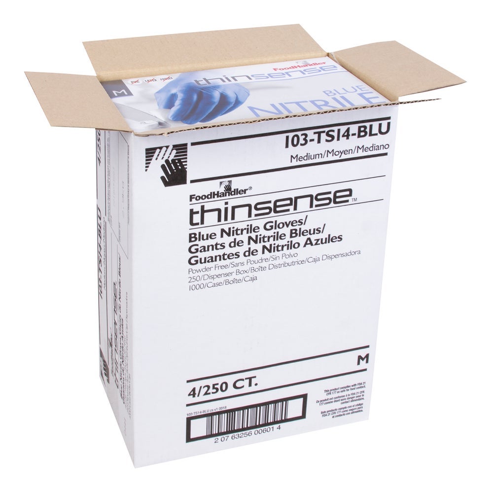 Thinsense Thinsense Medium Nitrile Gloves, Powder-Free, Blue, 250 Ct Box, 4/Case
