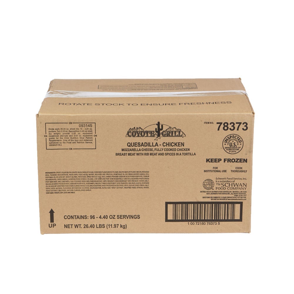 Coyote Grill Chicken/Cheese/Salsa Quesadilla, 100% Mozzarella, Whole Grain, Frozen, 4.4 Ounce, 96 Ct Package, 1/Case