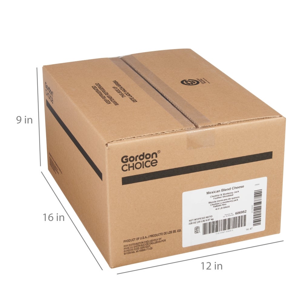 Gordon Choice Mexican Cheese Blend, Cheddar & Monterey Jack, Feather Shredded, 5 Lb Bag, 4/Case