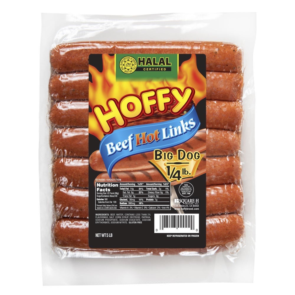 Hoffy Hot Beef Sausage, 6.75 Inch, Links, 4 Count per Pound, Fresh, 5 Lb Package, 4/Case