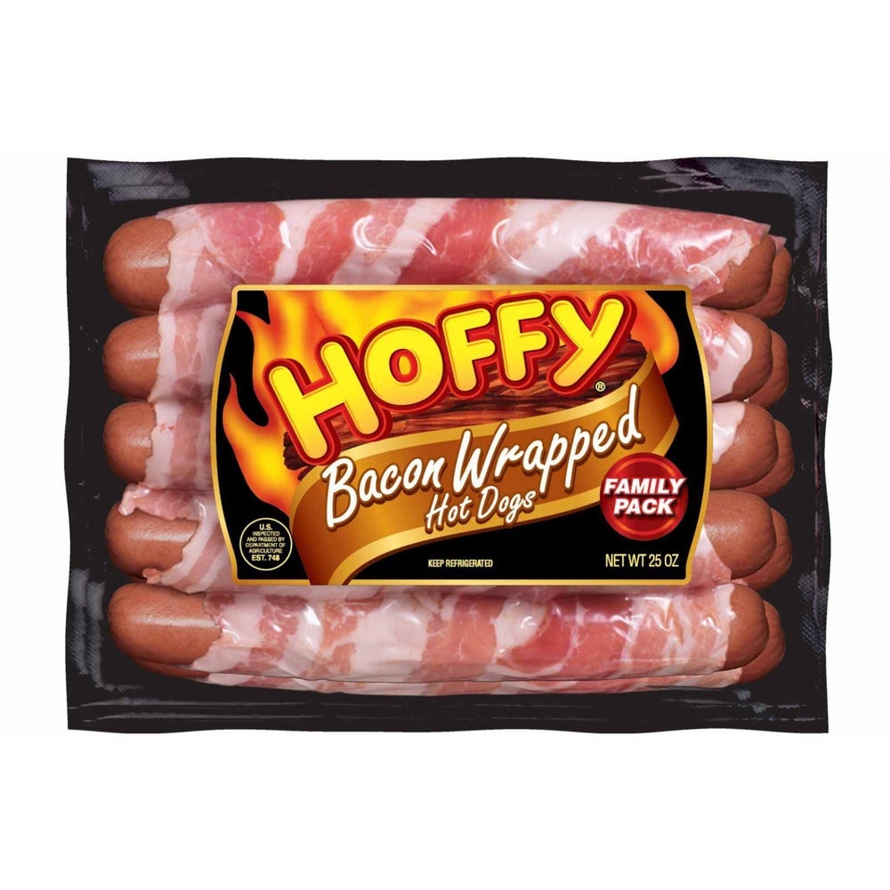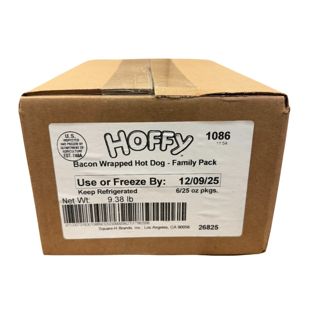 Hoffy Bacon-Wrapped Franks, 6.75 Inch, 6 Count per Pound, Fresh, 25 Oz Package, 6/Case