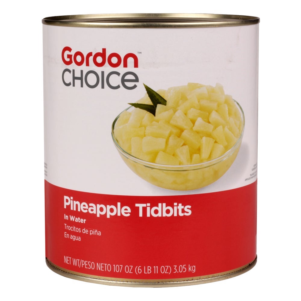 Gordon Choice Pineapple Tidbits, in Water, Choice, #10, 10 Can Sz Can, 6/Case