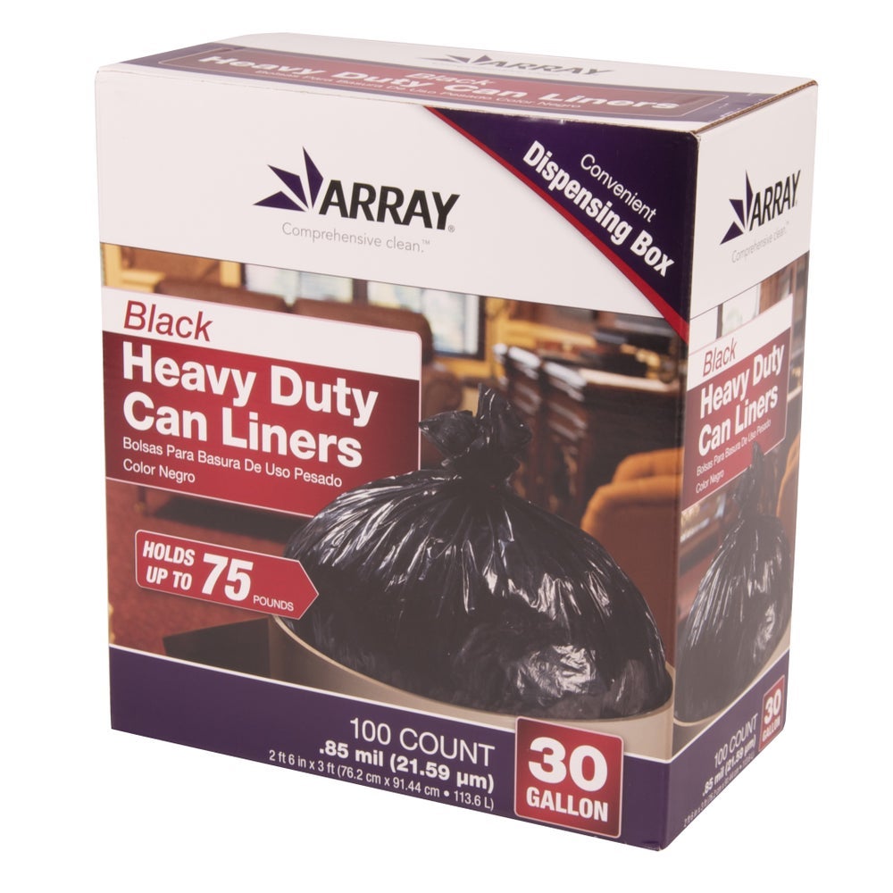 Array 30 Gallon Heavy-Duty Black Can Liners, 100 Ct Box, 4/Case