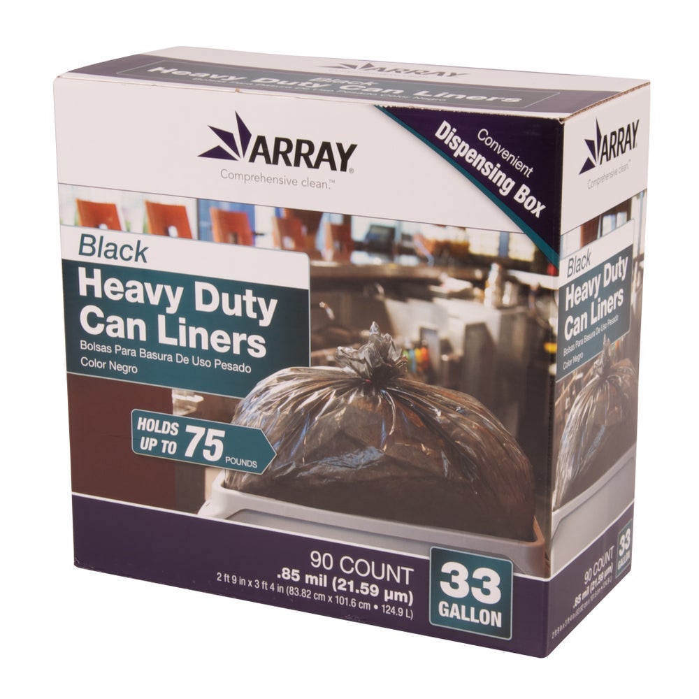 Array 33 Gallon Heavy-Duty Black Can Liners, 90 Ct Box, 4/Case