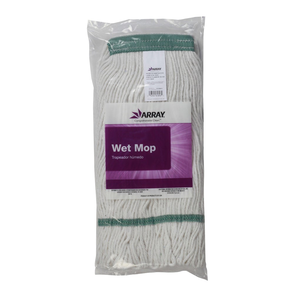 • Clean floors are a must! A clean floor tells your customers the story of the cleanliness of the entire facility. These Array wet mops are looped-end mops, which provide longer mop performance. Looped-end mops may be more expensive than others but can be laundered and reused multiple times.